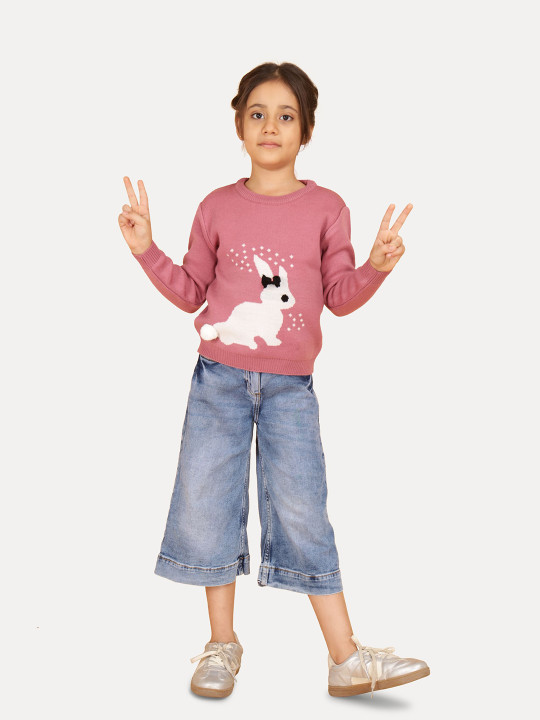 Girls Graphic Printed Winter Pullover – Soft & Cozy Knitwear