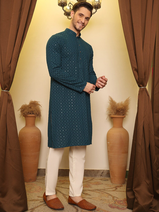 Light embroidered kurtas matched with churidar pants or cotton trousers deliver a refined traditional look. Leather sandals or slip-ons add the final touch.