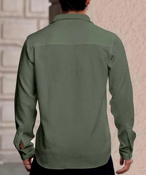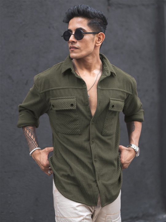 Men’s Olive Green Textured Oversized Casual Shirt