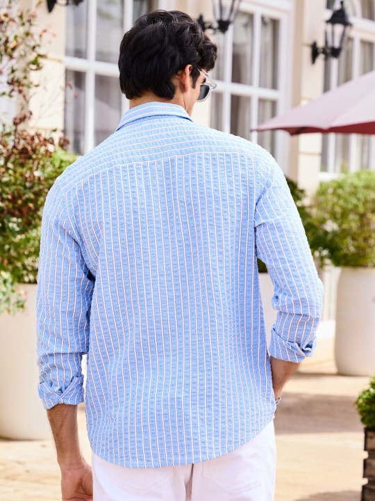 Men’s Classic Slim Fit Vertical Striped Cotton Shirt