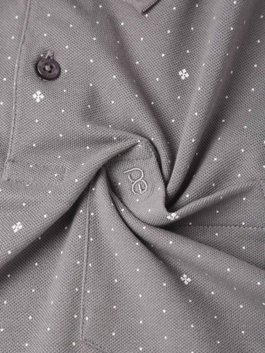 Geometric Printed Polo Collar Regular Sleeves Pocket Regular Fit T-Shirt