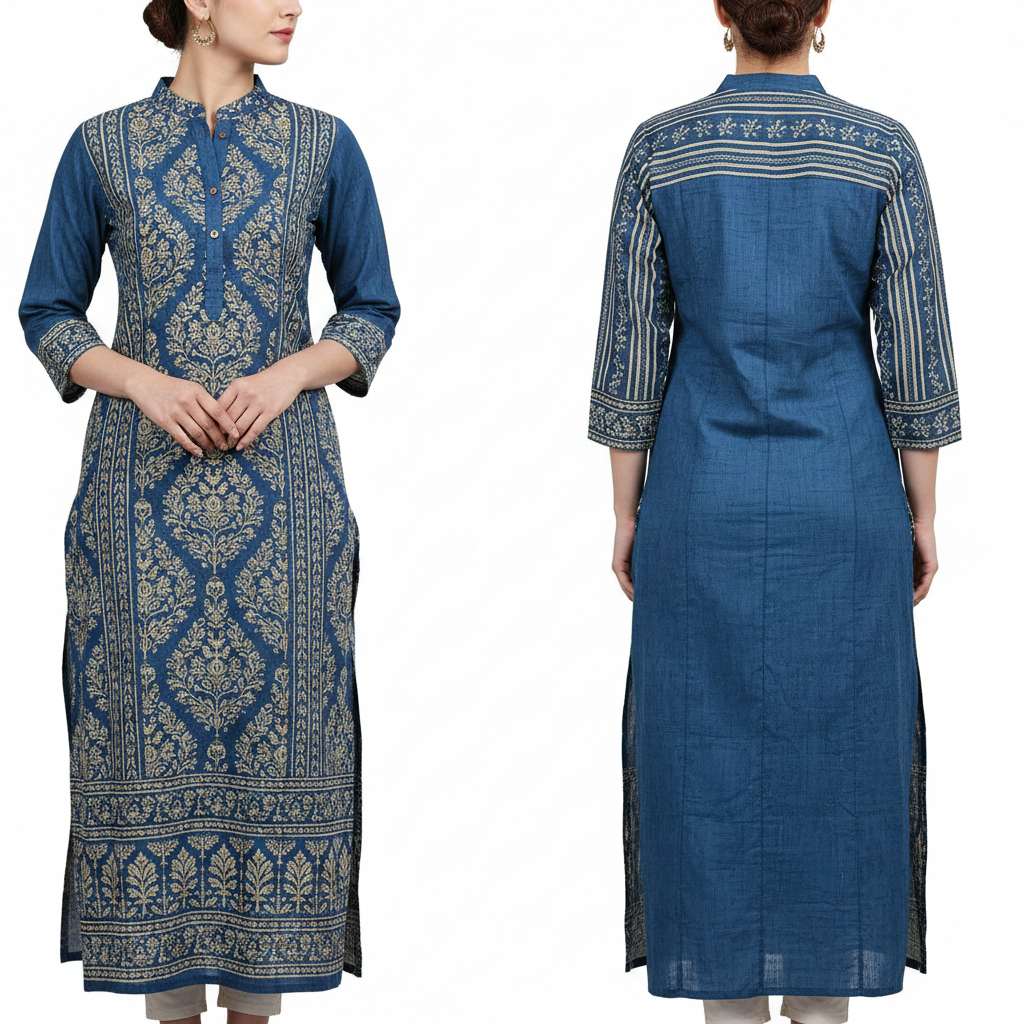 Patterned kurtas and tunics styled with leggings, palazzos, or straight pants create elegant silhouettes. Ethnic footwear completes the ensemble with ease.