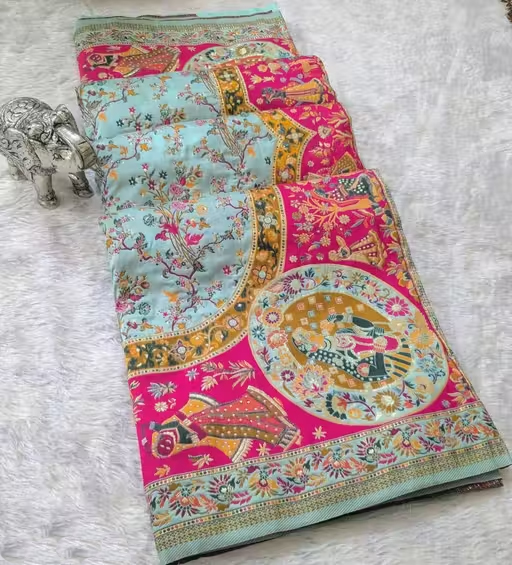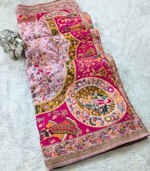 Enhance your ethnic wardrobe with this best-selling Dola silk saree, designed to reflect timeless elegance and charm. Crafted from premium Dola silk fabric, it offers a soft texture with a graceful drape. The rich design and vibrant colors make it perfect for weddings, festivals, parties, and special occasions. Pair it with statement jewelry to complete your traditional look.