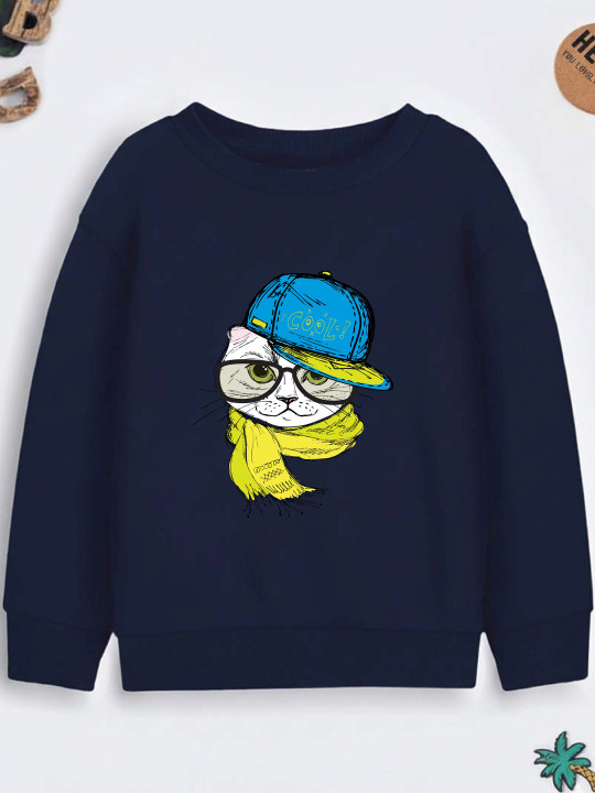 This adorable Cool Cat printed sweatshirt is made from soft, skin-friendly cotton that keeps kids warm and comfortable during winter. The trendy glasses design adds a fun, stylish look suitable for school, outings and daily wear. Ribbed cuffs and hem ensure a snug fit while maintaining shape. Ideal for toddlers and young kids who love playful prints. A perfect blend of comfort and style for winter days.
