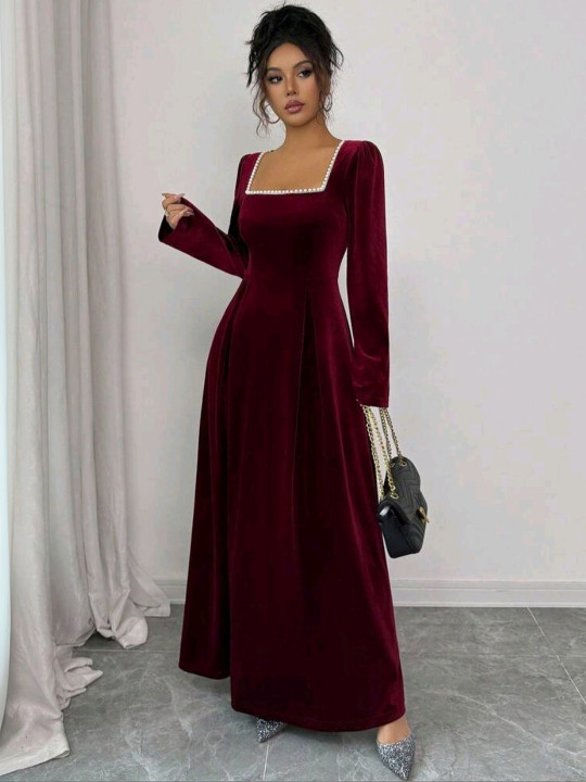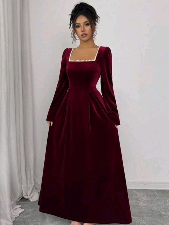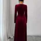 A luxurious woollen velvet maxi dress with a flattering fit & flare silhouette perfect for winter wear, parties, and evening outings.