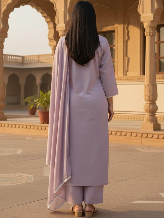The matching trousers offer a relaxed and comfortable fit, making this set ideal for office wear, casual outings, festive occasions, and family gatherings. Simple yet elegant, this kurta set is easy to style with ethnic footwear and minimal jewelry for a graceful look.