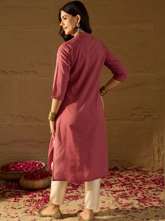 Elevate your ethnic wardrobe with this Women’s Ethnic Motifs Thread Work Embroidered Kurta. Crafted from soft, breathable fabric, it offers comfort and a flattering fit for all-day wear. The intricate thread work and ethnic motif embroidery enhance its traditional charm, making it suitable for office wear, casual outings, and festive events.