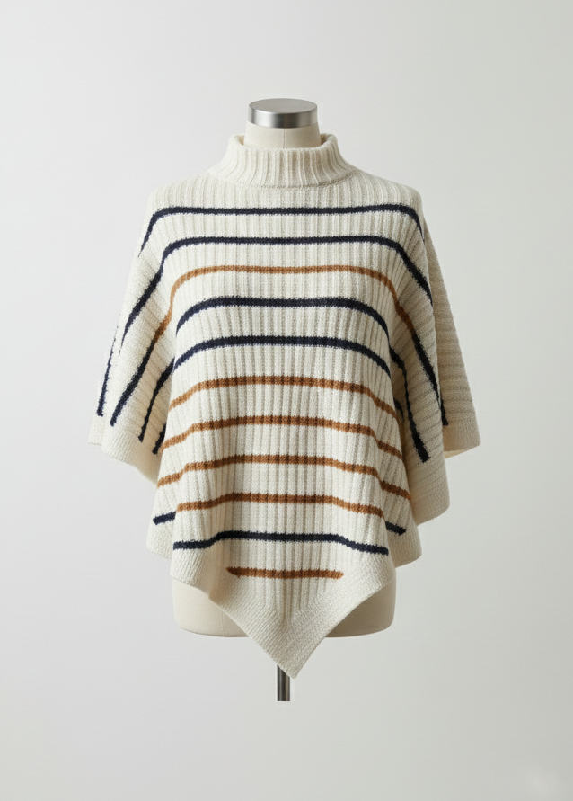 This women’s woolen poncho top is a perfect blend of comfort and style for winter season. Made from soft and cozy woolen fabric, it features a turtle neck that provides extra warmth around the neck area. The classic striped pattern gives it a modern look, while the relaxed poncho fit ensures easy movement and all-day comfort. Ideal for casual outings, office wear or daily winter use. Pairs beautifully with jeans, leggings or trousers.
