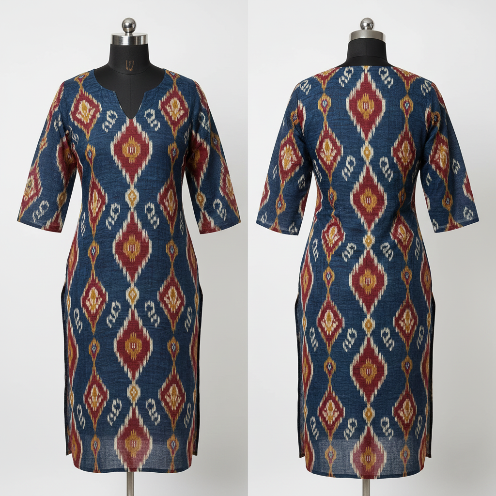 Pair with solid leggings, straight pants, or palazzos. Add minimal jewellery and flats for a refined ethnic look.