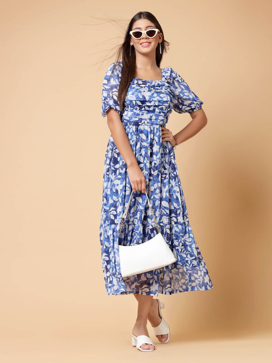 The vibrant floral print on a soothing blue base creates a fresh and feminine look. Crafted from soft, breathable fabric, it ensures all-day comfort, making it ideal for brunches, casual outings, vacations, and daytime gatherings. Style it with flats for a relaxed look or heels for a chic statement.