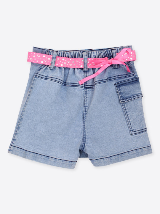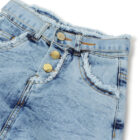 This stylish embellished denim skirt combines the look of a skirt with the comfort of shorts underneath. It features a cute heart applique, button details and a bright pink printed belt for an adorable and trendy finish. Made from soft, durable denim that keeps kids comfortable during play and outings. The added side pocket enhances its playful and functional design. A fashionable must-have for young girls’ wardrobes.