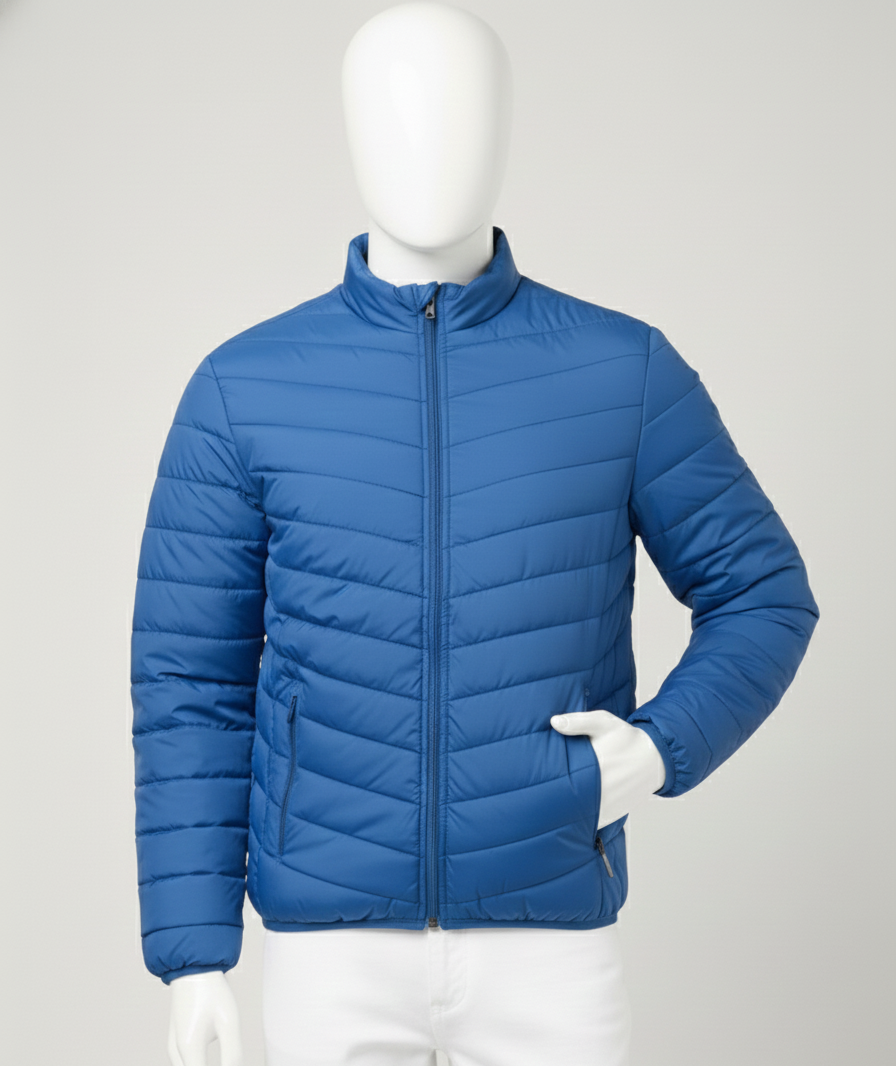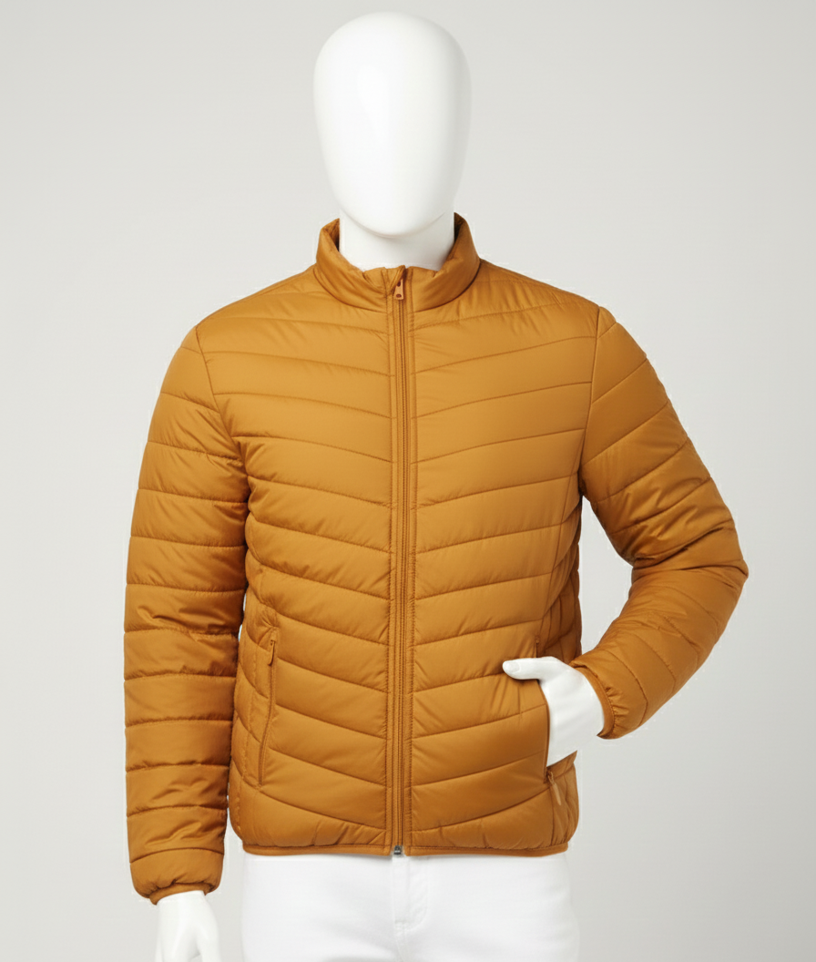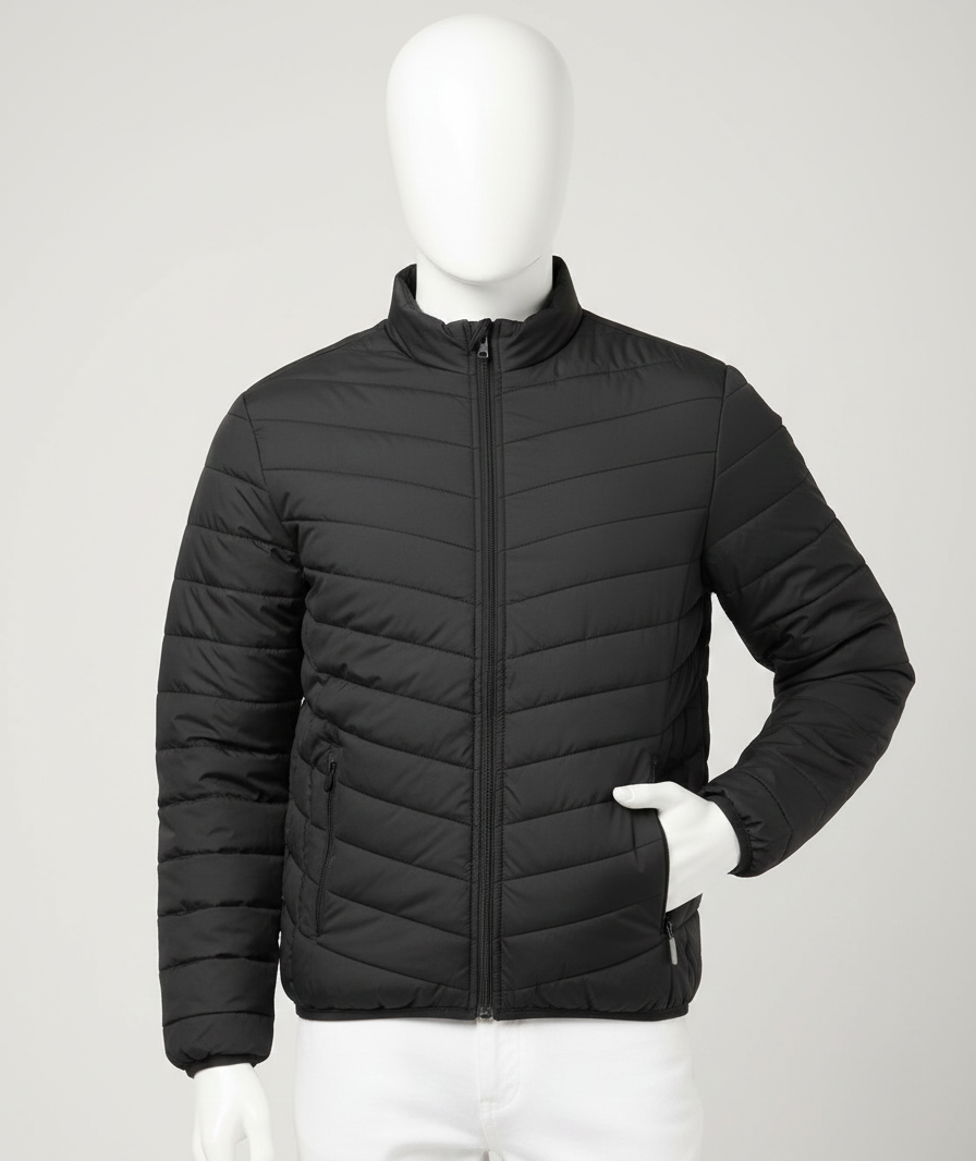 Stay warm and stylish during winter with this men’s quilted puffer jacket. Made from lightweight yet insulated nylon fabric, it provides warmth without feeling bulky. The regular fit and bomber-style design make it ideal for daily wear, travel and outdoor use. Easy to pair with jeans or trousers for a clean winter look.