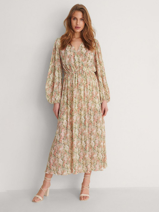 A stylish floral print midi dress with puff sleeves and a flattering A-line silhouette—perfect for casual outings, brunches, and day wear.