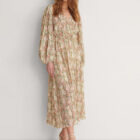 Women’s Floral Print Puff Sleeve A-Line Midi Dress