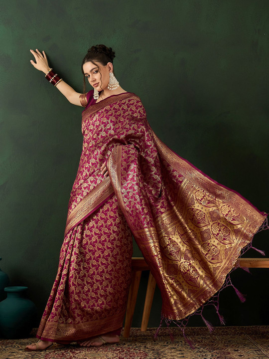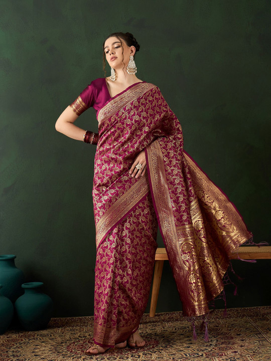 Enhance your ethnic wardrobe with this stunning Woven Design Saree featuring intricate detailing and a rich traditional look. Made with premium-quality fabric, the saree offers a soft, comfortable drape that enhances elegance and charm. The matching blouse piece allows you to style the saree just the way you like, whether for weddings, festive celebrations, parties, or cultural gatherings.