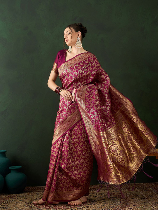The woven design adds a sophisticated touch, making this saree ideal for women who love classic and graceful Indian wear. Pair it with traditional jewellery and heels for a complete ethnic look.