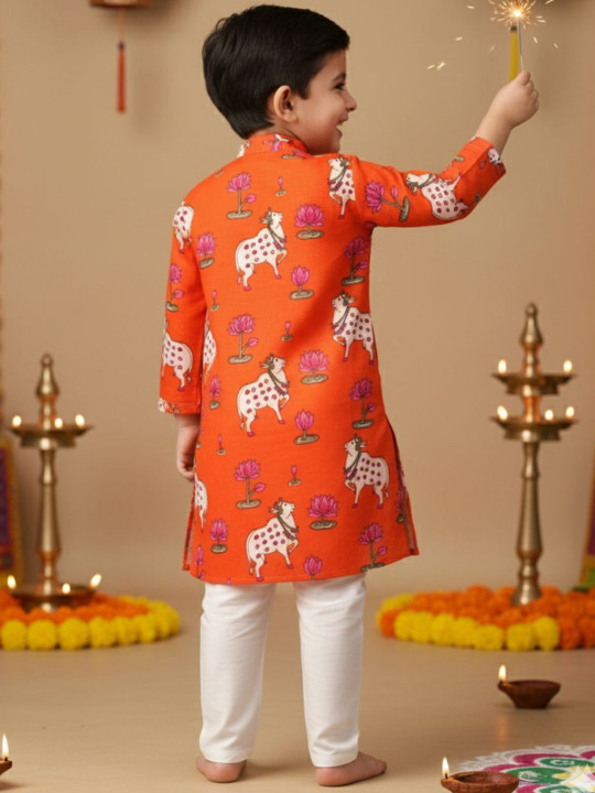 Soft pure cotton printed kurta with matching pyjama for boys. Perfect for festive occasions, traditional events and family celebrations.